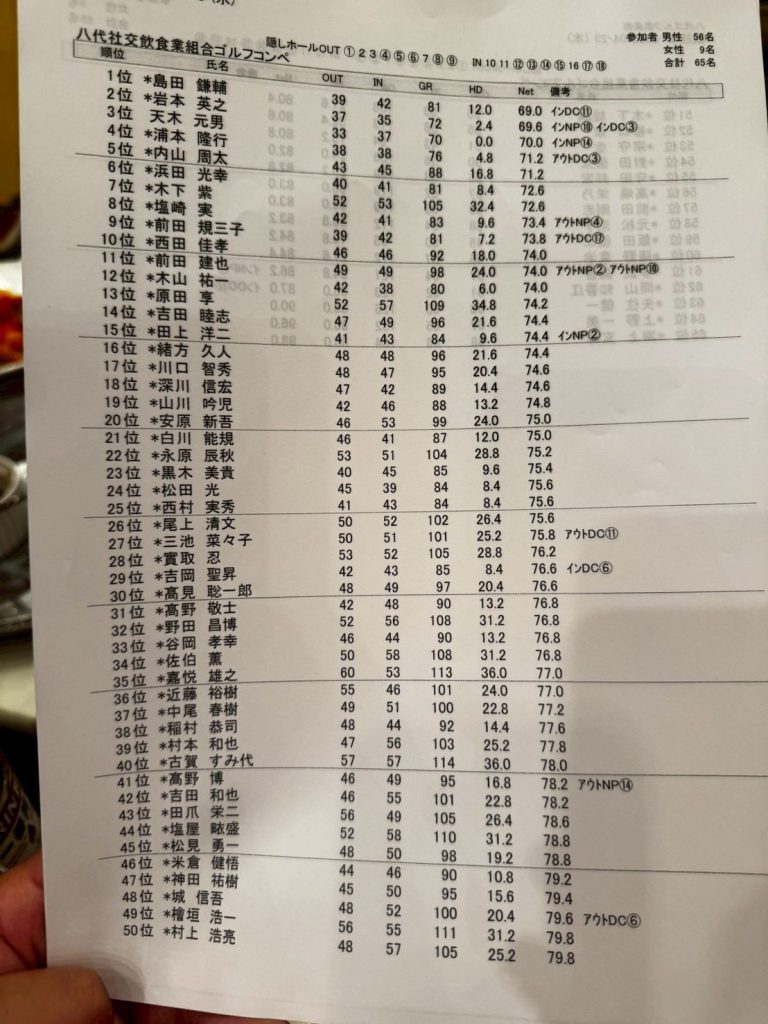 ゴルフコンペ結果