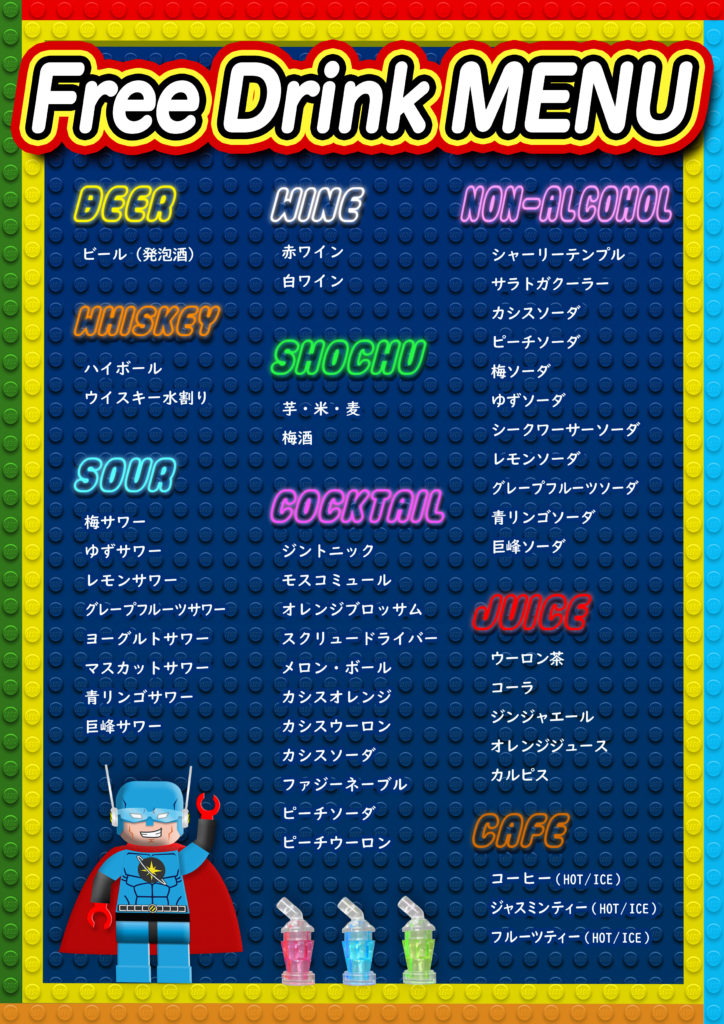 飲み放題+ポップコーン食べ放題(各種フレーバー)